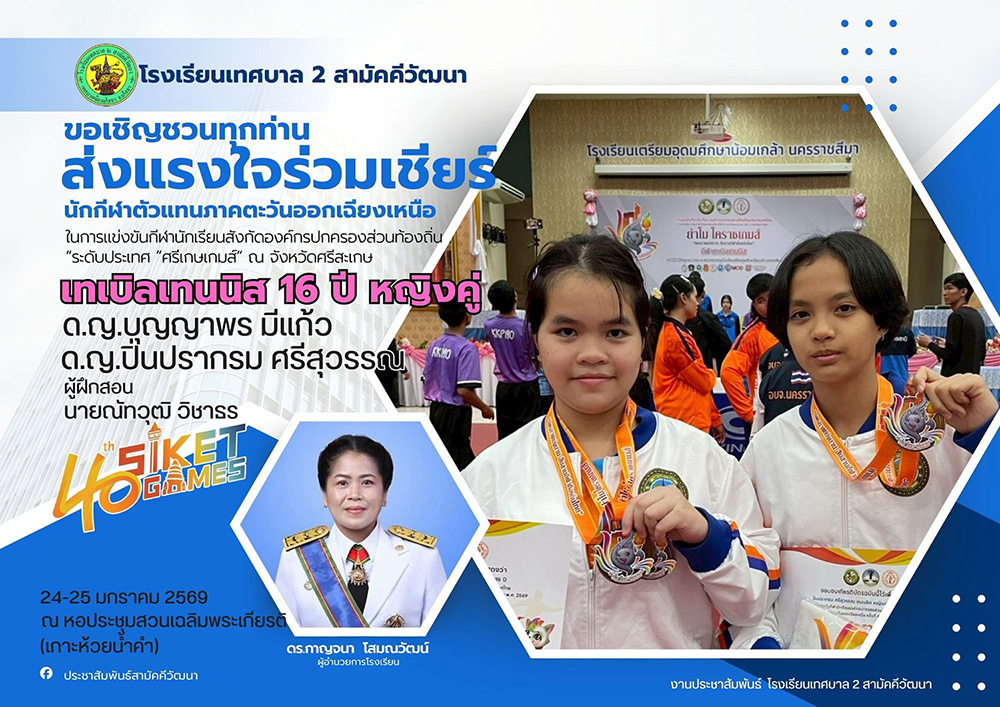 ยินดีต้อนรับเข้าสู่เว็บไซต์โรงเรียนเทศบาล 2 สามัคคีวัฒนา